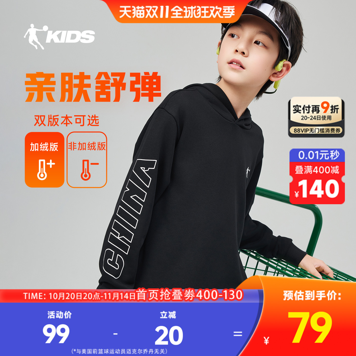 乔丹童装男童连帽卫衣运动秋冬装2025新款大童加绒上衣长袖帽衫女