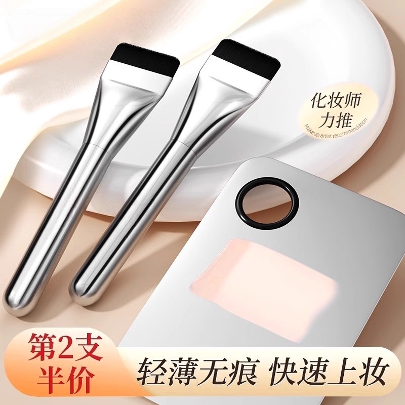一字型粉底刷扁头无痕不吃粉加调色板粉底液底妆化妆上妆刷子便携