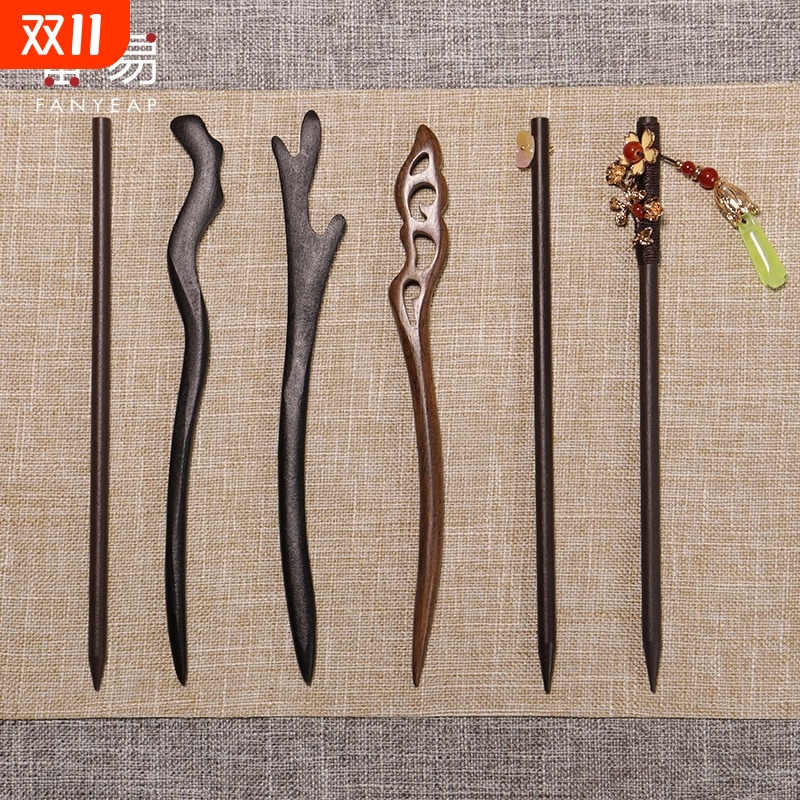 发簪/木A1pn0-汉服古风发钗日常盘发用简约木钗流苏步摇中式简