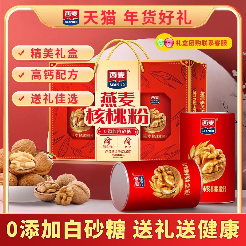 西麦燕麦核桃粉1000g礼盒健康早餐代餐冲泡送礼长辈中老年营养品