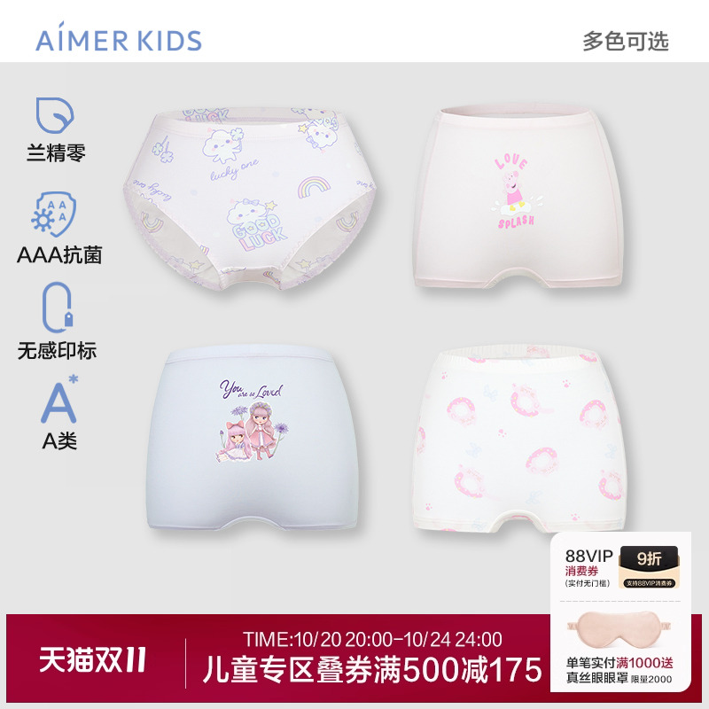 爱慕儿童天使小裤兰精莫代尔抗菌A类舒适男女孩中腰平角裤/三角裤