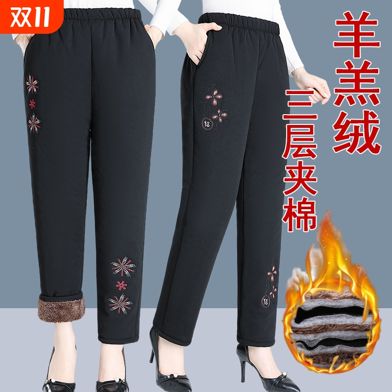 中年妈妈裤子秋冬新款加肥大码休闲裤中老年人女裤加绒加厚保暖裤
