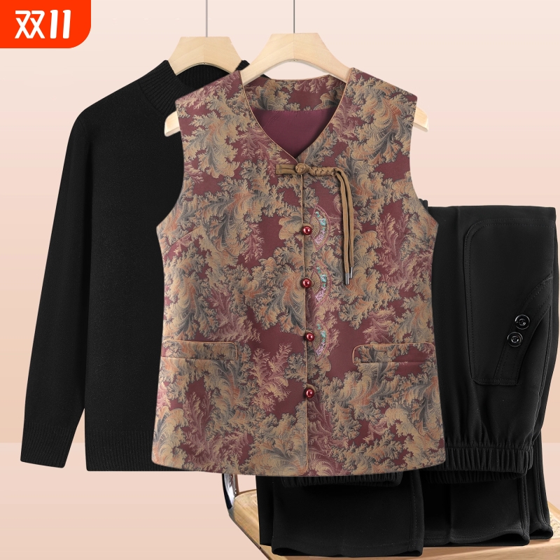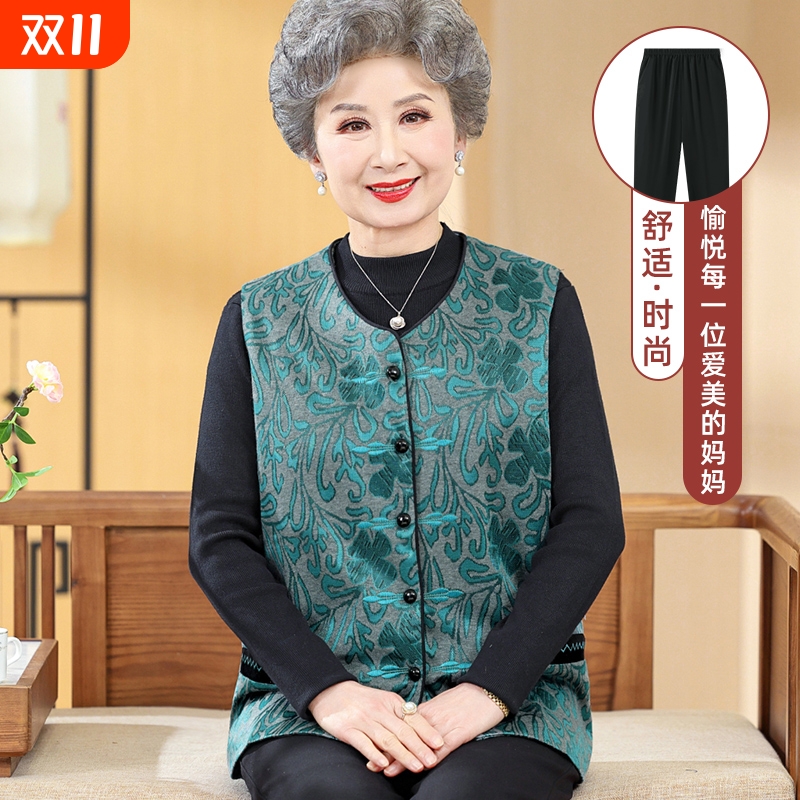 中老年人女裤春秋新款外穿休闲长裤妈妈花裤子秋冬加绒直筒奶奶裤