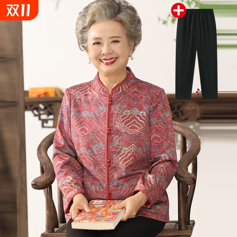 中老年妈妈春秋衬衫奶奶上衣休闲