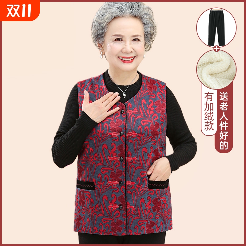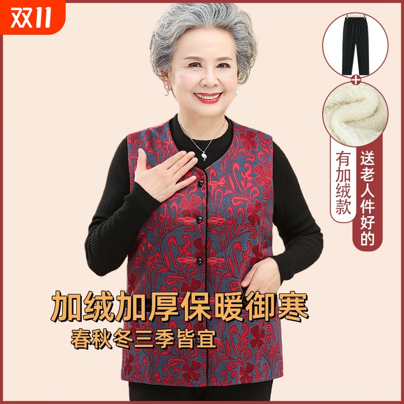 热风圈中老年人保暖内衣女加绒开衫妈妈厚外套奶奶秋衣老太太冬季