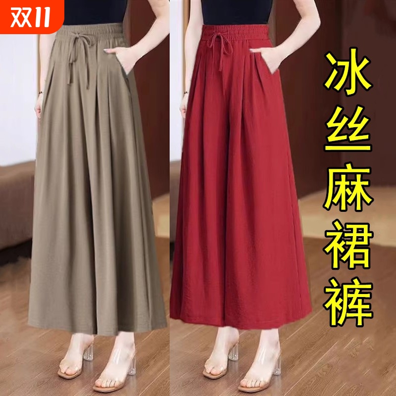 冰丝阔腿长裤女裙裤女妈妈垂感裤