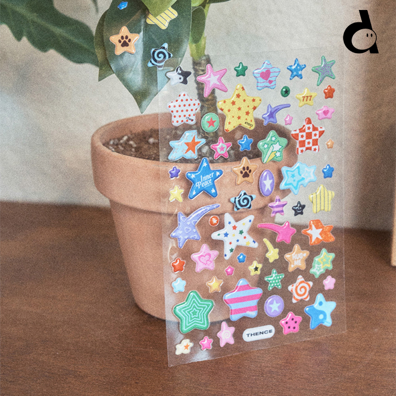 韩国THENCE复古星星标语滴胶贴纸