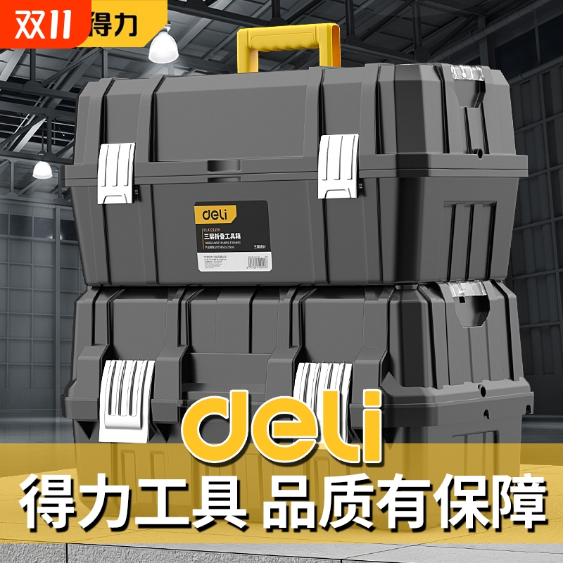 得力deli多层折叠工具箱收纳盒多功能收纳箱五金车载手提防水安全