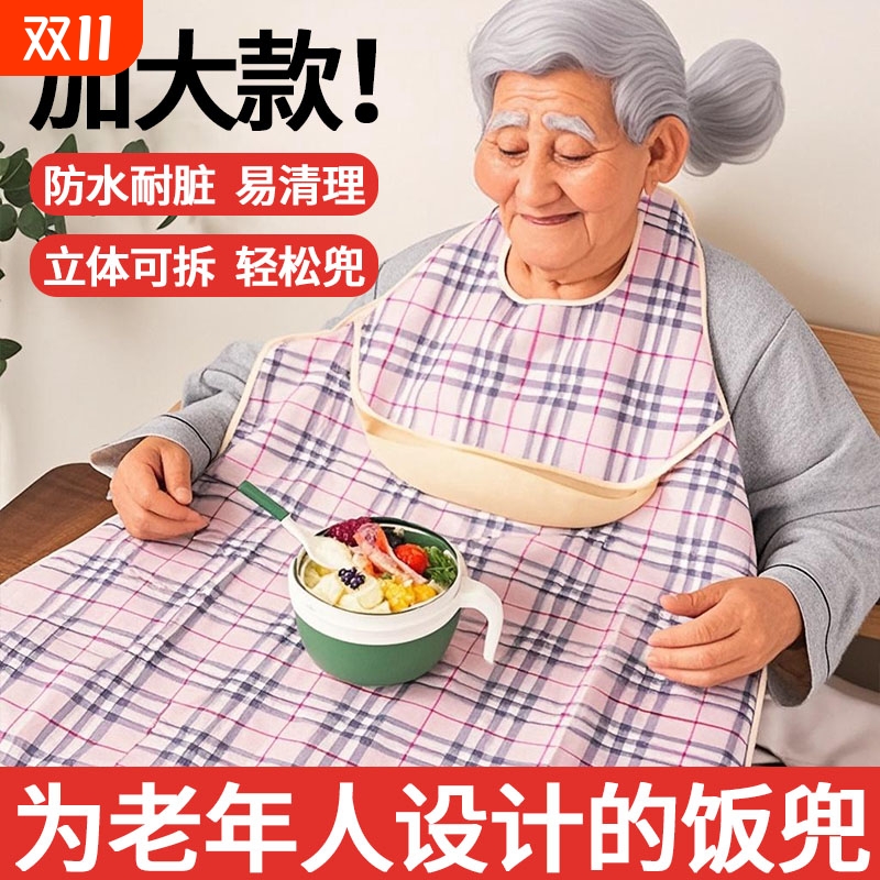 老人吃饭用的围兜成人防水饭兜口水巾老年人男女围裙大人围嘴大号