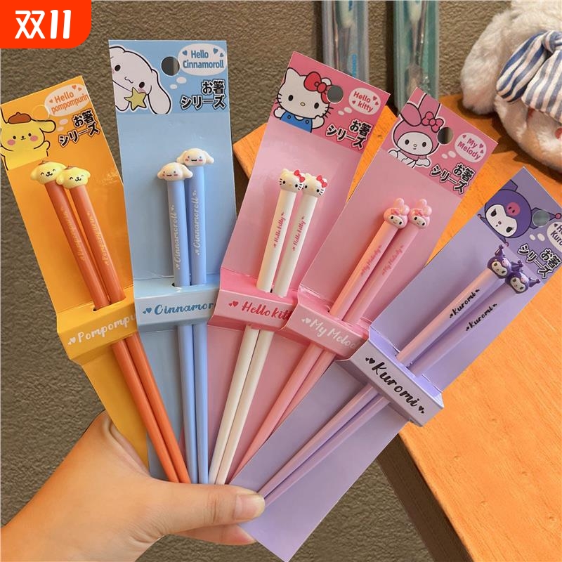 卡通美乐蒂防滑筷子高颜值家用学生可爱公仔吃饭一人儿童筷防霉
