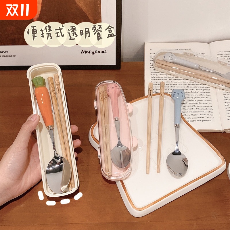 儿童餐具一人便携式上学筷子勺子套装吃饭收纳盒小学生用宝宝