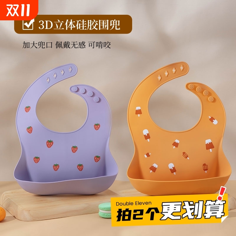 宝贝有约硅胶围兜防污防漏口水兜