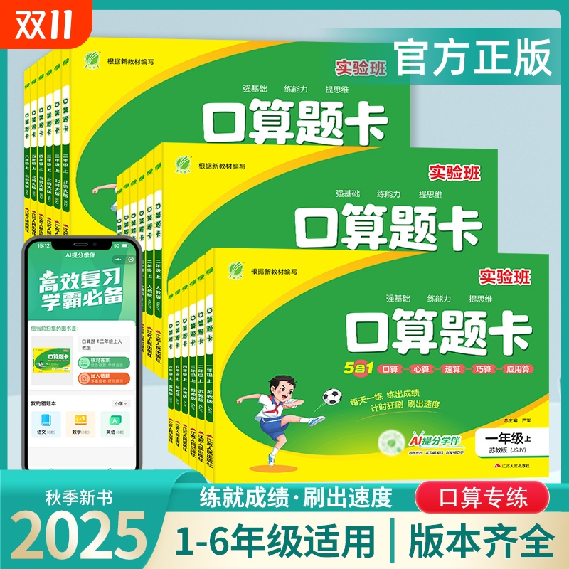 2025秋实验班口算题卡小学生1-6年级一二三四五六上册适用人教