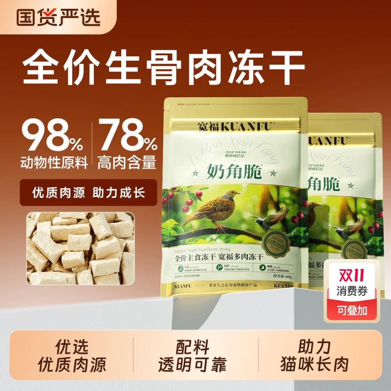 宽福自然食谱多肉全价主食冻干奶角脆猫粮生骨肉鲜肉高蛋白鸡肉