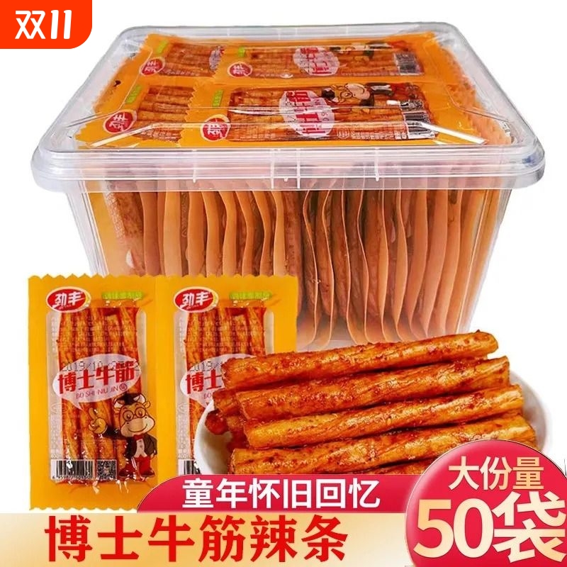 劲丰博士牛筋休闲零食辣条批发价网红童年小包装豆筋辣条