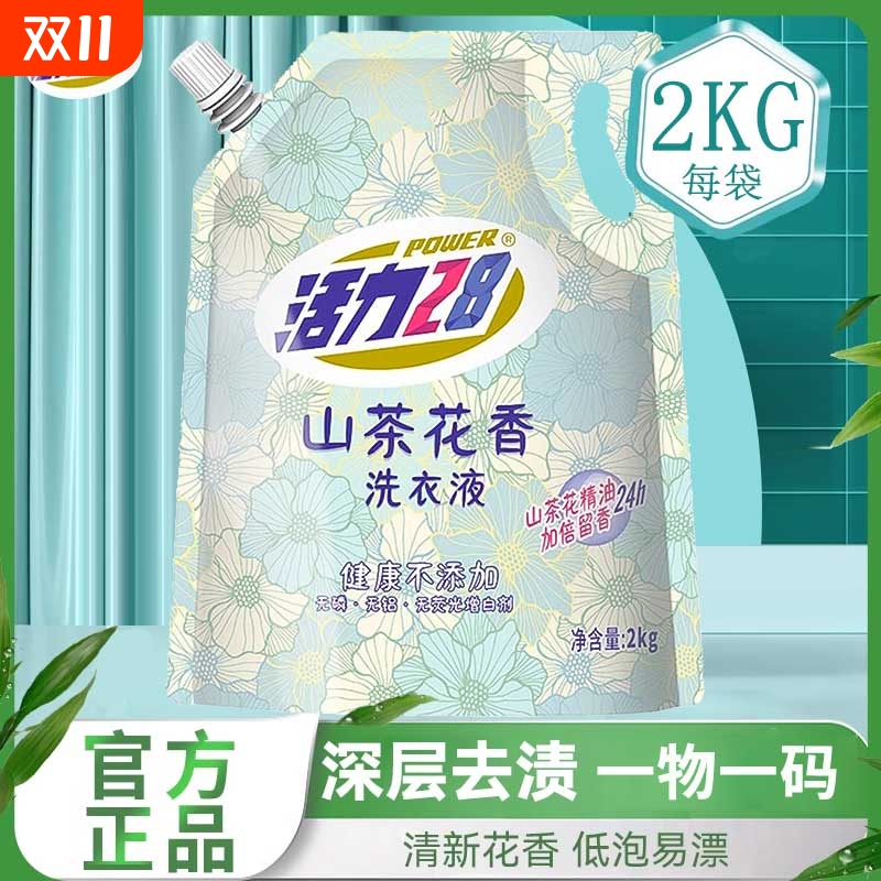 活力28山茶花香氛洗衣液除菌不伤手袋装实惠装2kg