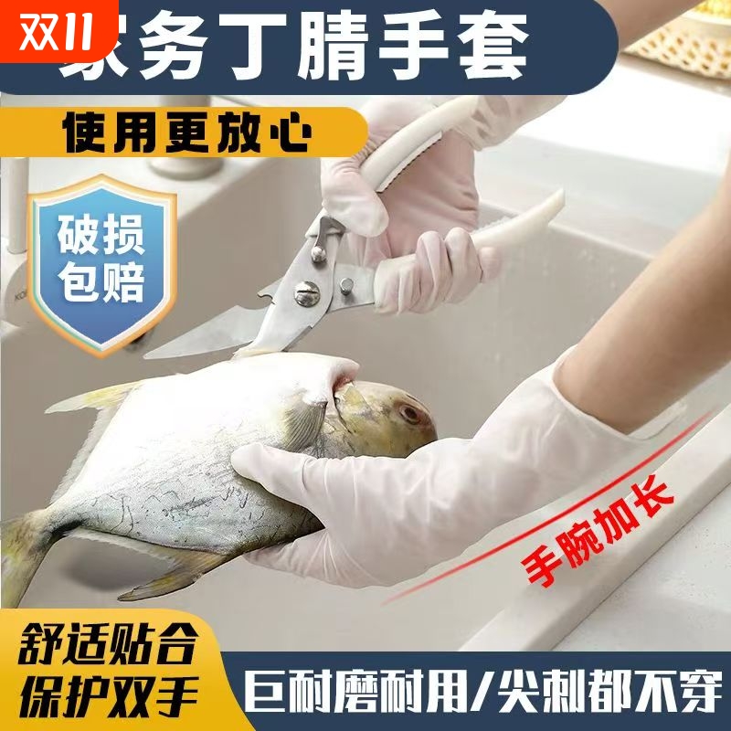 爱似水丁腈手套食品级家务防护加厚长防水厨房洗碗清洁加长洗衣