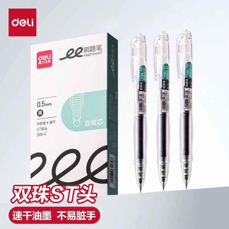 得力s08中性笔学生用文具笔红笔教师用0.5黑色红色蓝墨蓝商务办