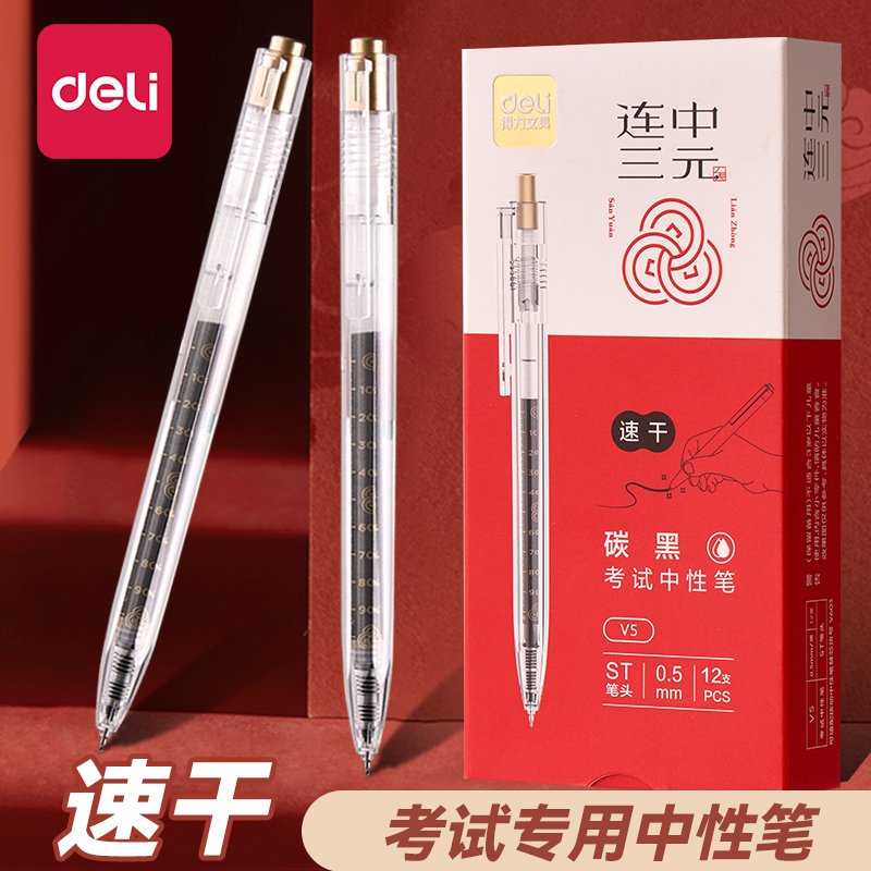 得力连中三元考试中性笔0.5mm黑笔高颜值笔中考水笔高考按动笔刷