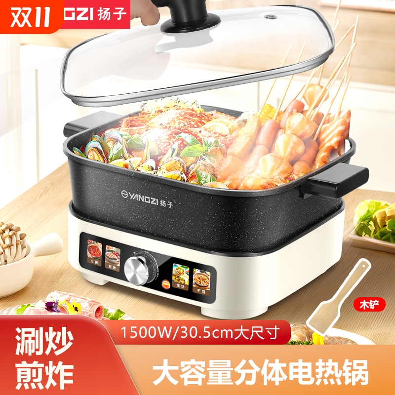 扬子多功能电煮锅可拆洗家用电火锅大容量可分体式不粘电热锅涮烤