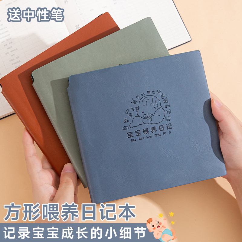 方形软皮笔记本子喂养日记本喂奶记事本宝宝成长发育记录本孩子儿童记