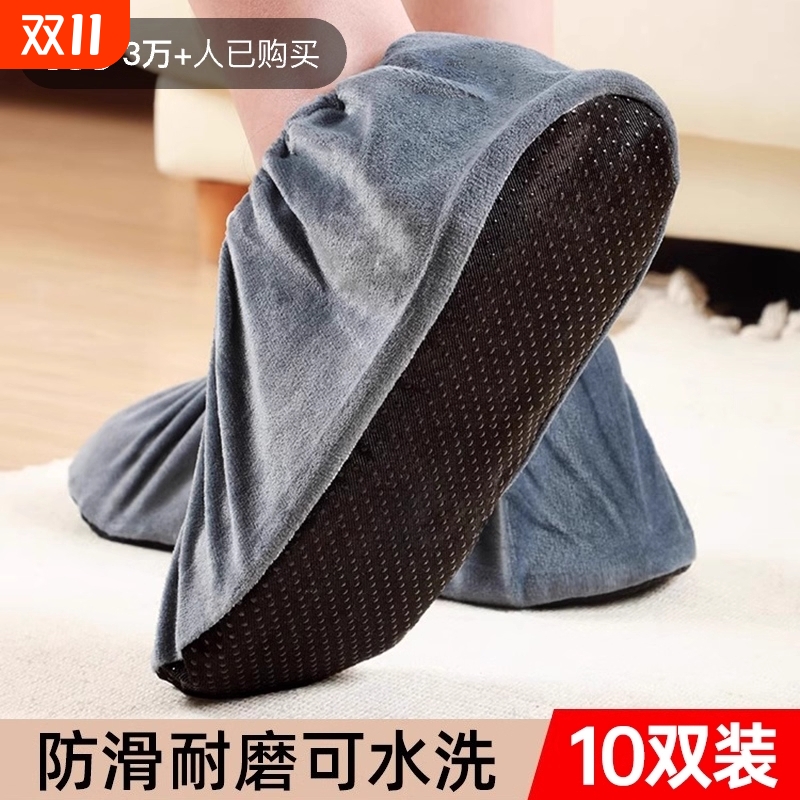 绒布鞋套反复使用儿童家用加厚耐磨室内布料可洗成人防滑脚套学生