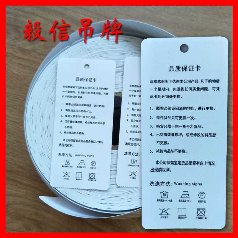 新款直销现货500张/卷服装通用品质保证卡温馨提示卷装吊牌打印吊
