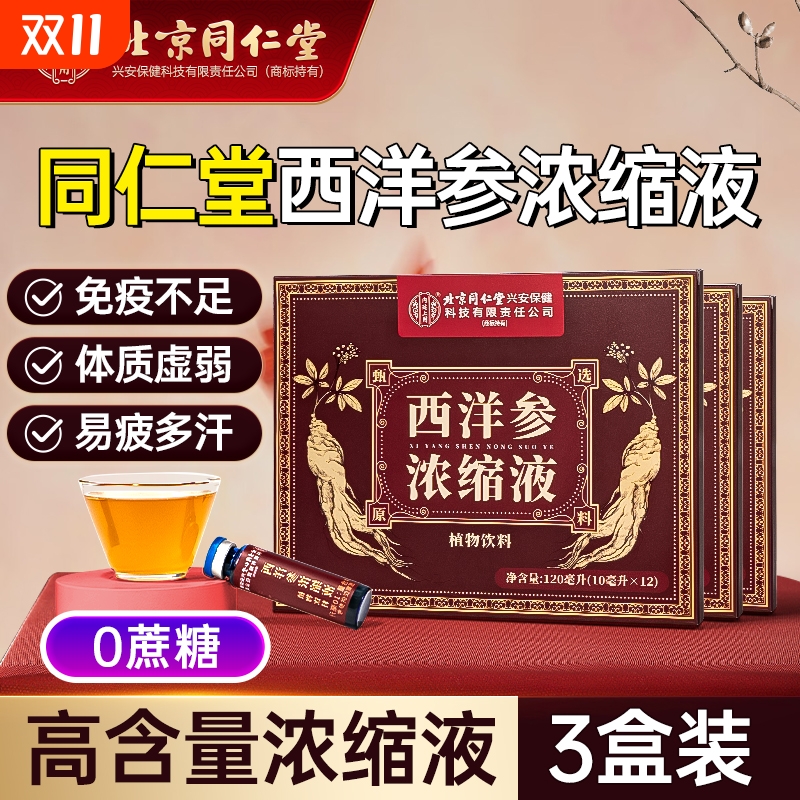 北京同仁堂西洋参浓缩口服液原浆官方旗舰店正品增强免疫力送父母
