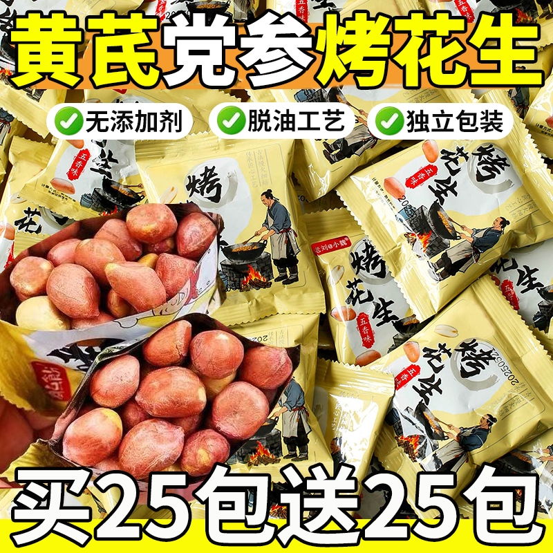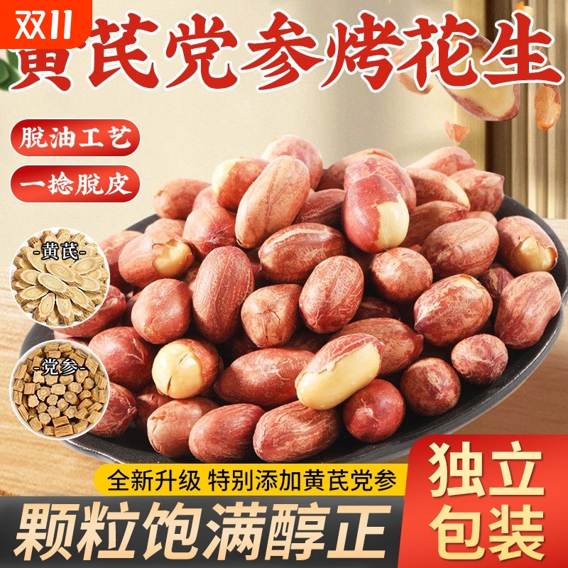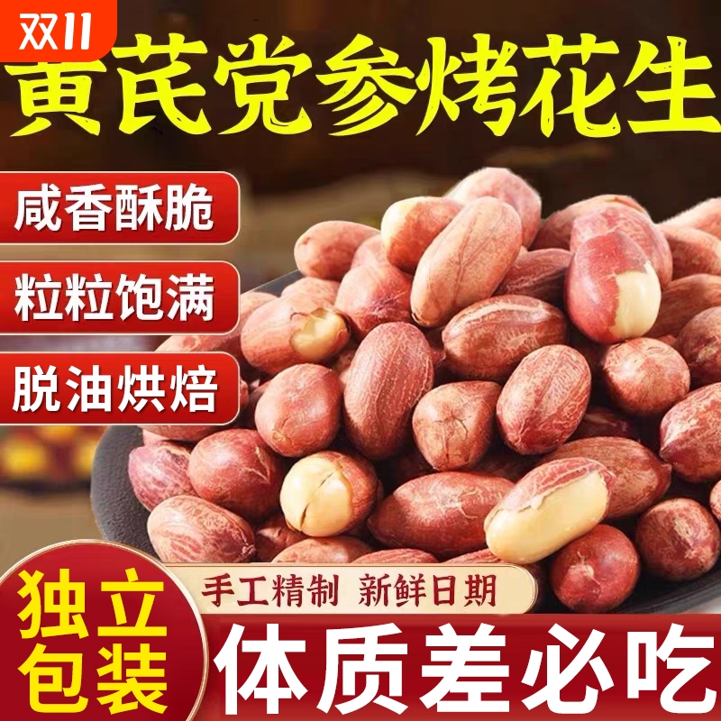 黄芪党参烤花生五香花生米下酒菜鬼红皮脱油花生炒货休闲零食新鲜
