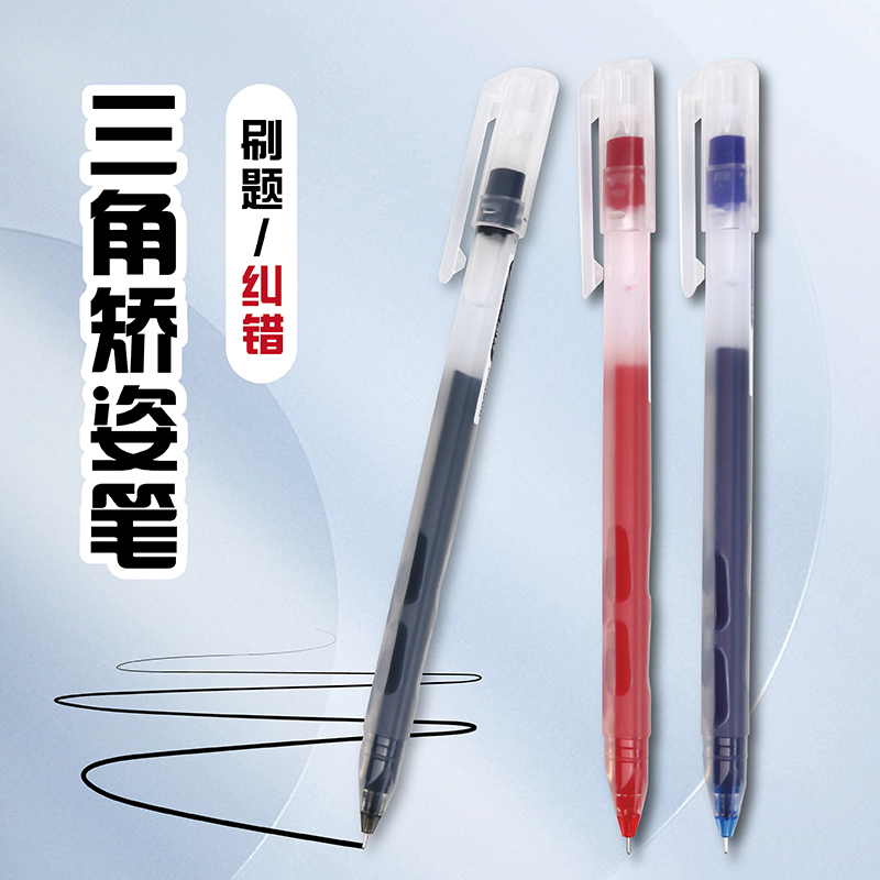 现代美三角正姿中性笔0.5mm针管头速干学生笔黑色矫姿笔红色蓝色