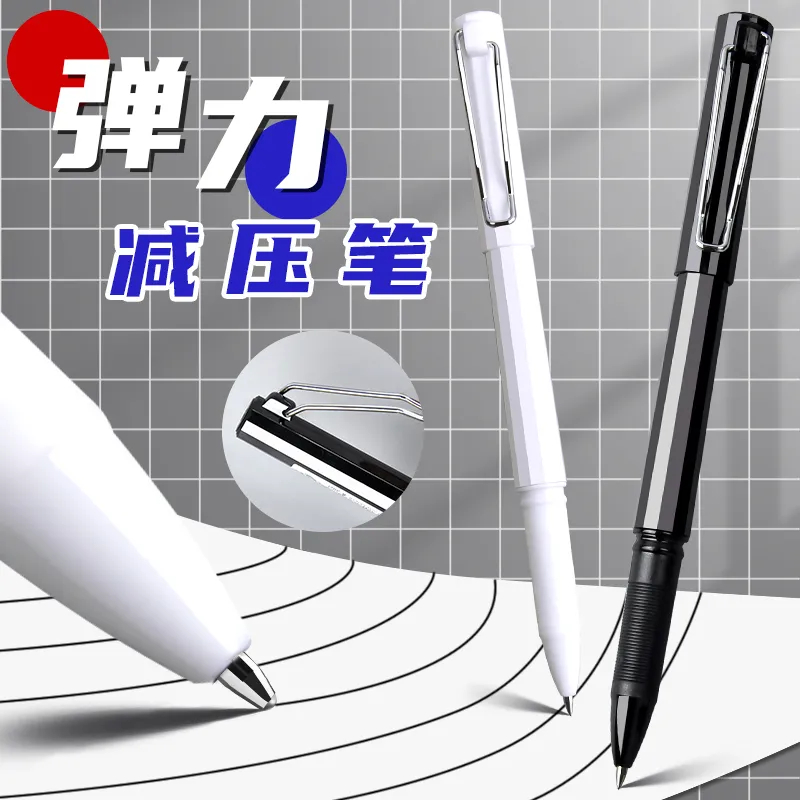 五千年弹力笔夹减压笔0.5mm子弹头黑色0.7办公签字笔学生刷题