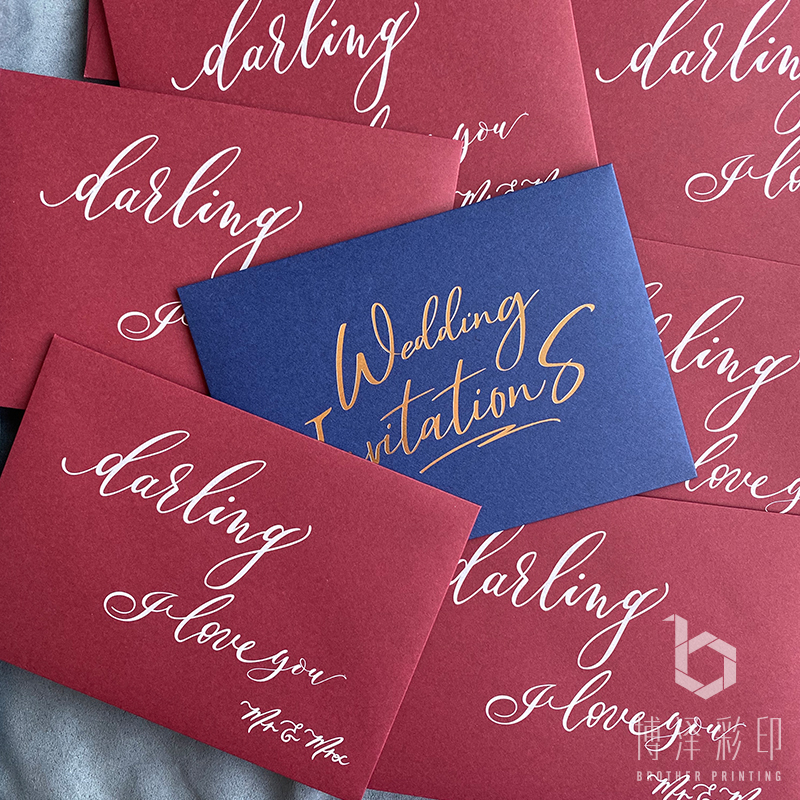 定制纯色加厚烫金丝网酒红仙蓝宝蓝渲染请柬邀请函信封多色入