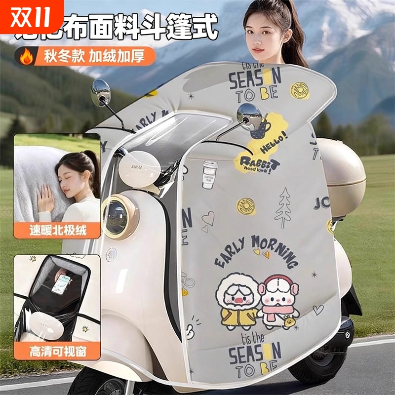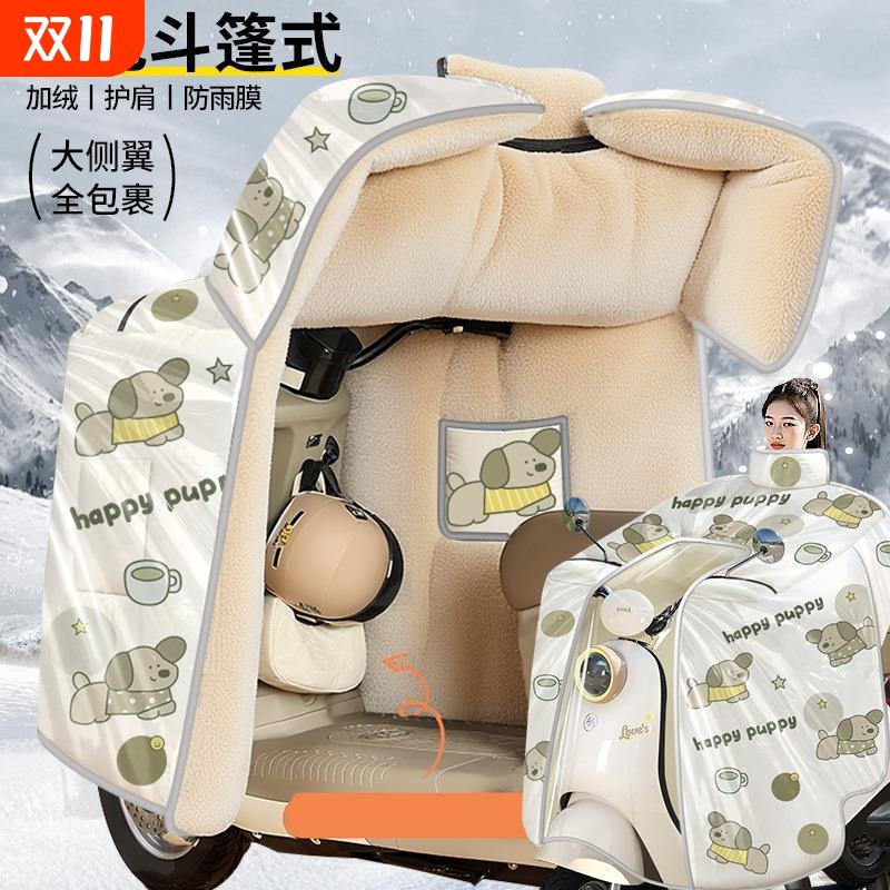 【覆膜防暴雨】电动车挡风被冬季加绒加厚全包斗篷式电瓶摩托车