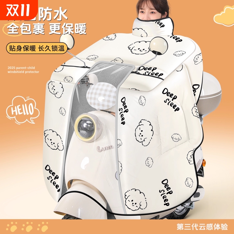 亲子款电动车挡风被带小孩冬季加绒加厚摩防水防风罩四季通用全包