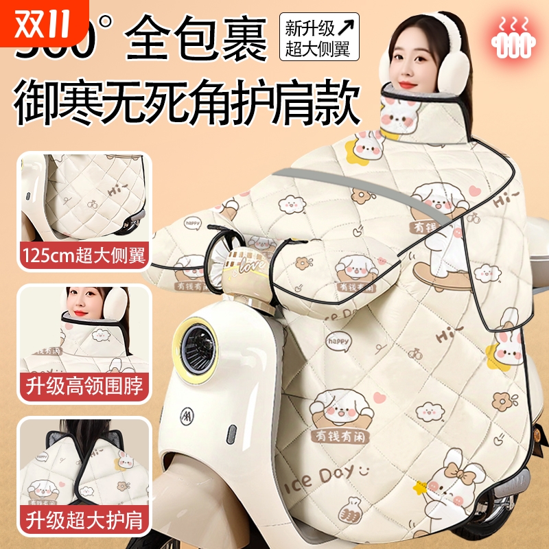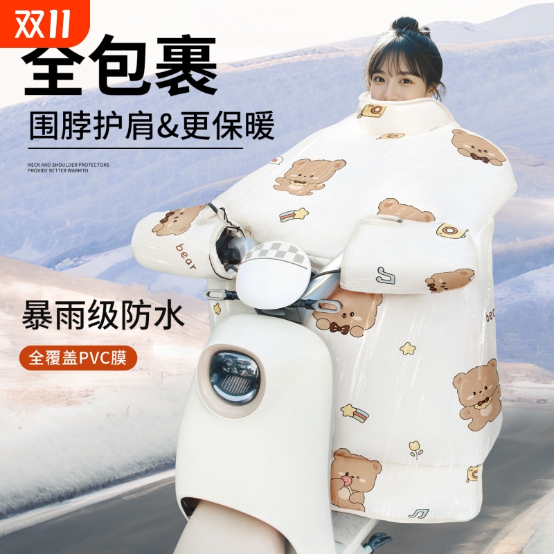 电动车挡风被新款全包斗篷式大保暖防寒护脖护肩防水加绒加大防风