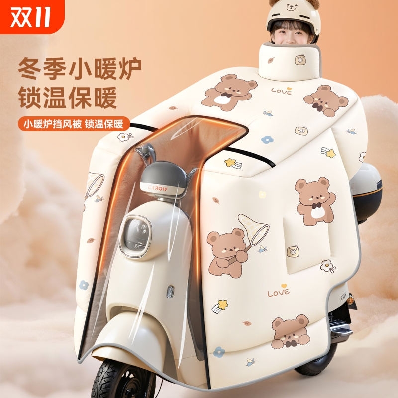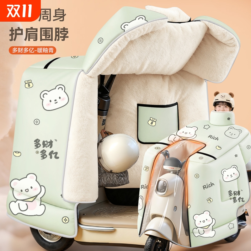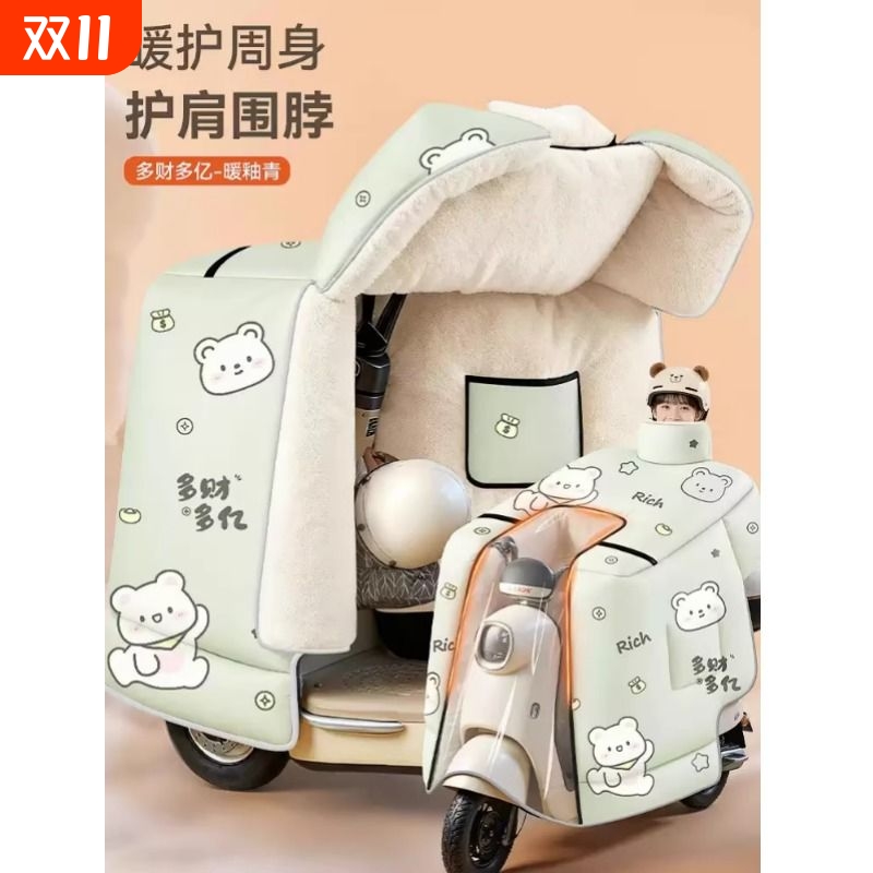电动车挡风被冬季全包斗篷式加绒加厚电瓶摩托防风防水罩四季通用