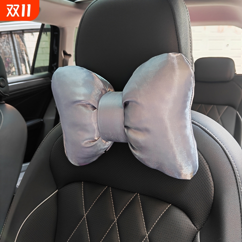 高弹丝缎面汽车蝴蝶结头枕可拆洗车座椅高级车载颈枕女生车内靠枕