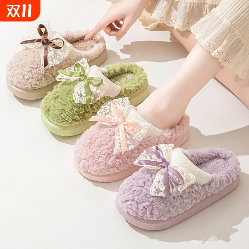 棉拖鞋女冬季蝴蝶结加绒保暖棉鞋