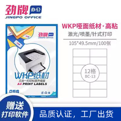 劲牌:蓝盒A4分切12格 不干胶标签纸 105*49.5mm 1