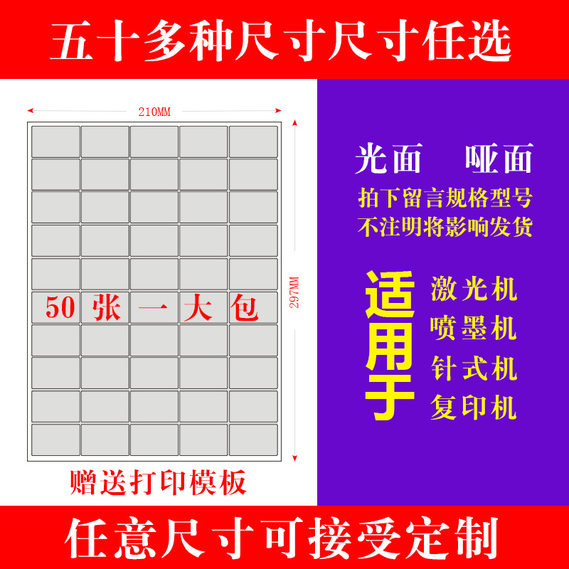 内切割a4不干胶标签打印纸空白哑格分切定制a4光面小方面不干新品