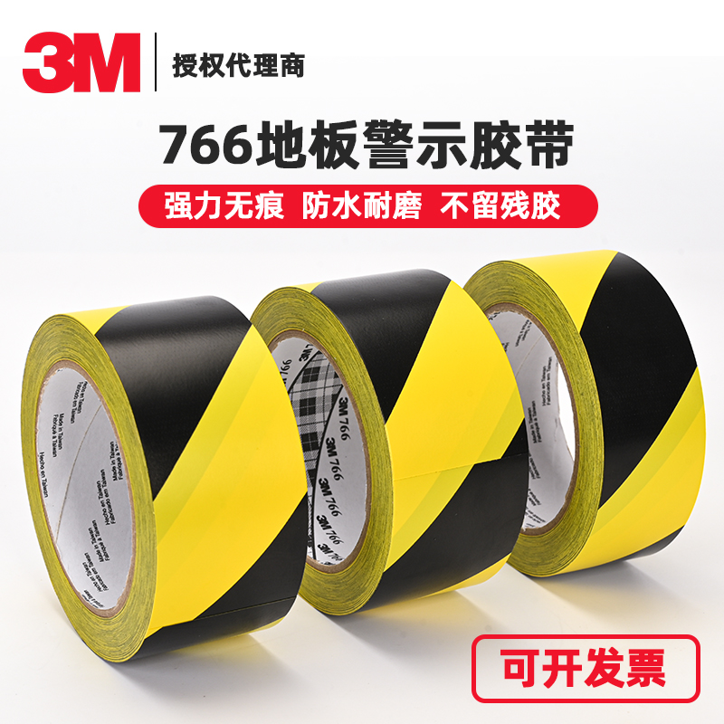 3M766黄黑警示胶带斑马胶布耐磨防水停车场车间区域划分定位胶带