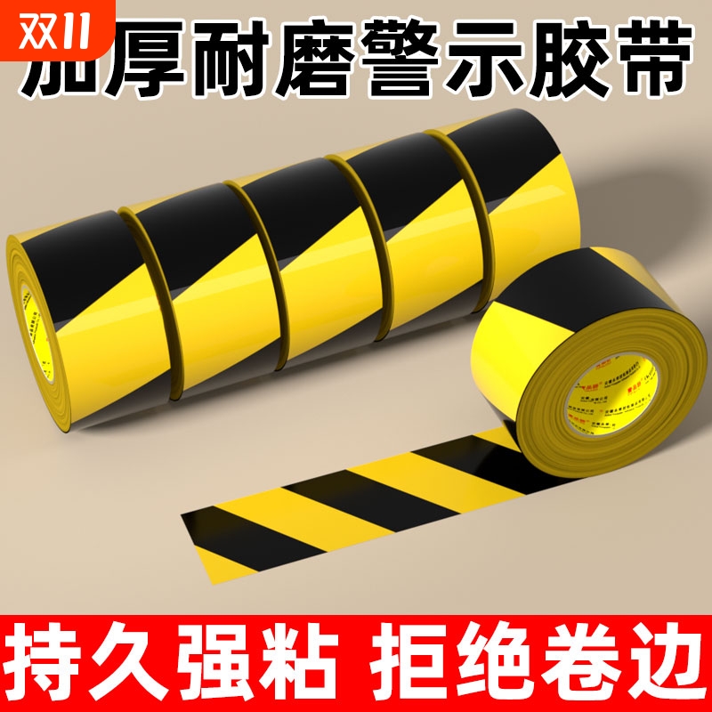 警示胶带强力黄黑斑马线pet防水高粘地面标识车间分区划线贴条安全
