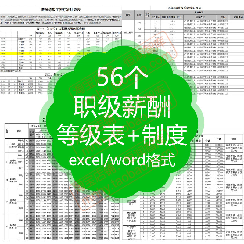 职级薪酬等级表制度表格岗位员工职级工资岗级表体系表划分表结构