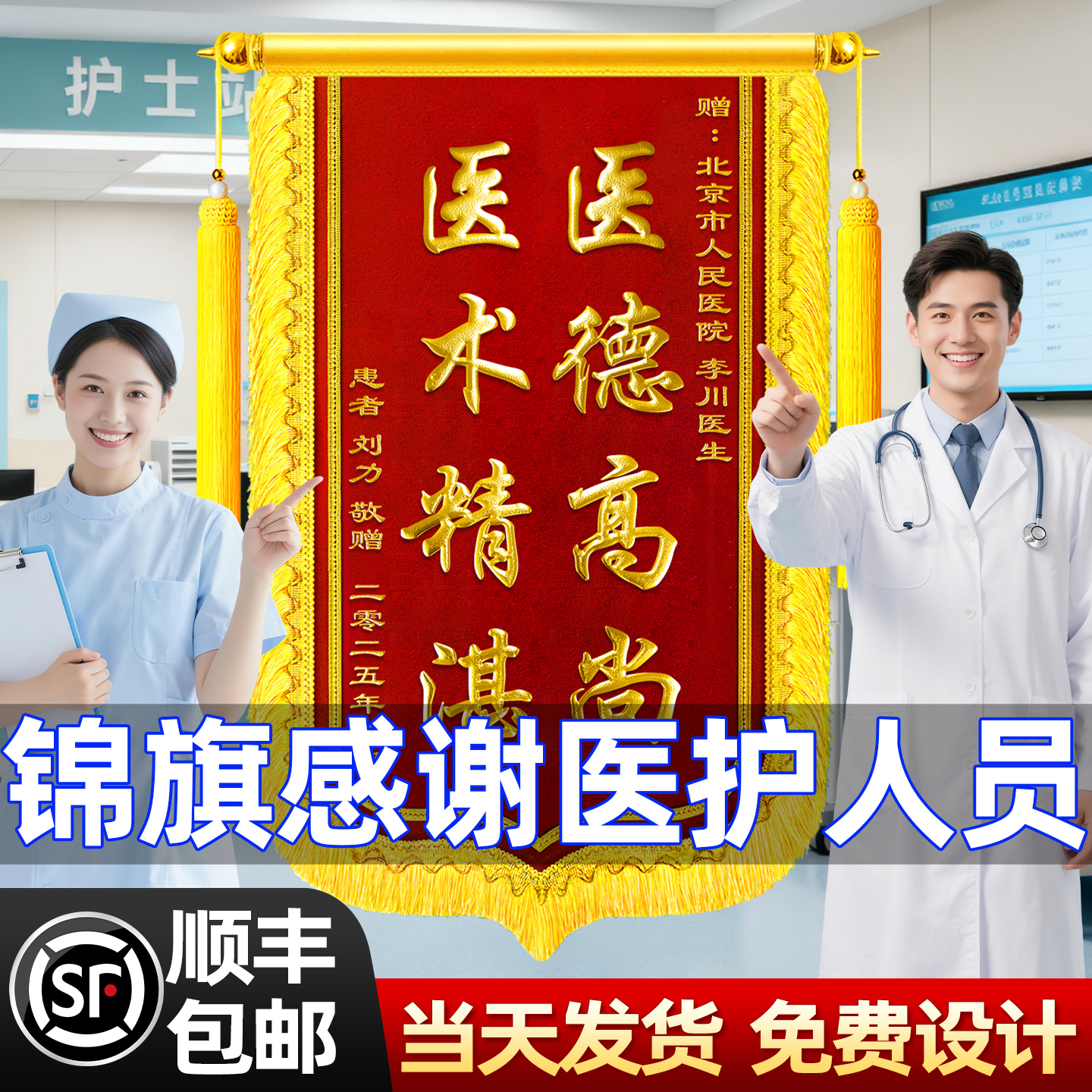 锦旗定制感谢医生顺丰加急次日达