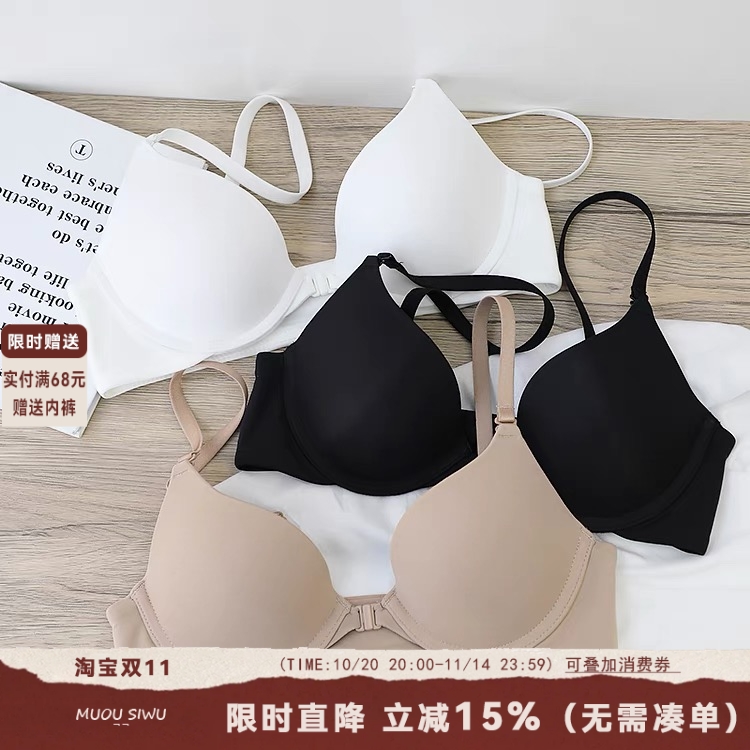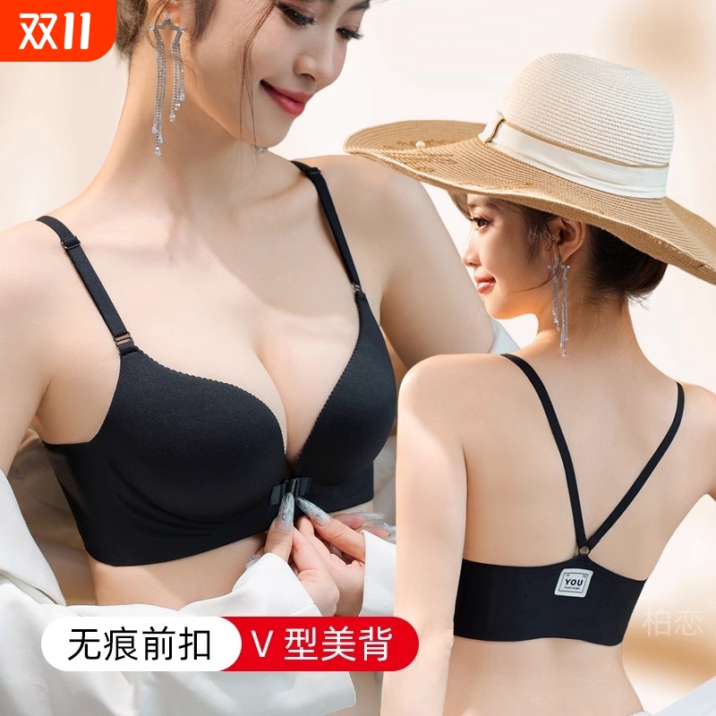 前扣内衣女上托聚拢无钢圈小胸防下垂收副乳性感美背一体式文胸罩