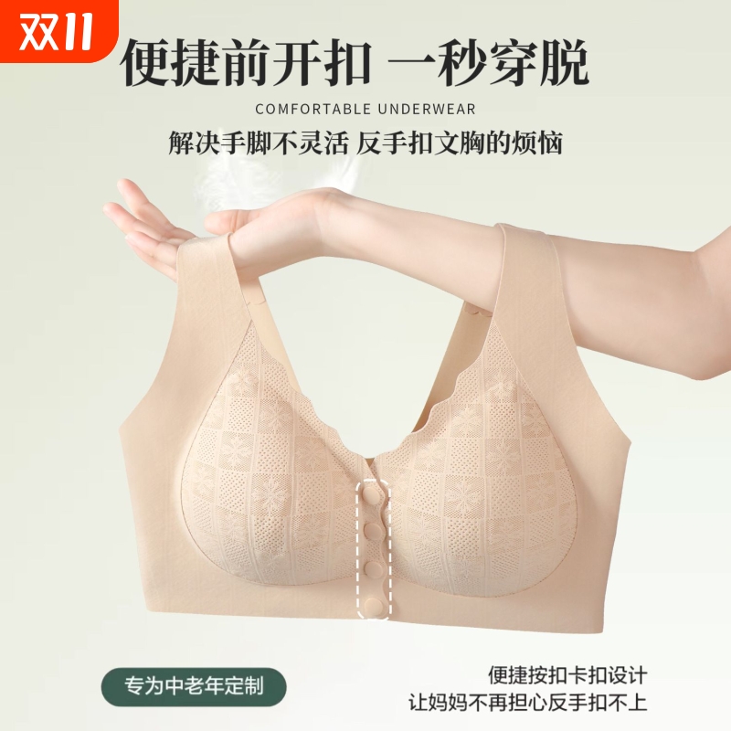 涟画妈妈内衣中老年无痕前扣背心式大码无钢圈上托透气聚拢文胸
