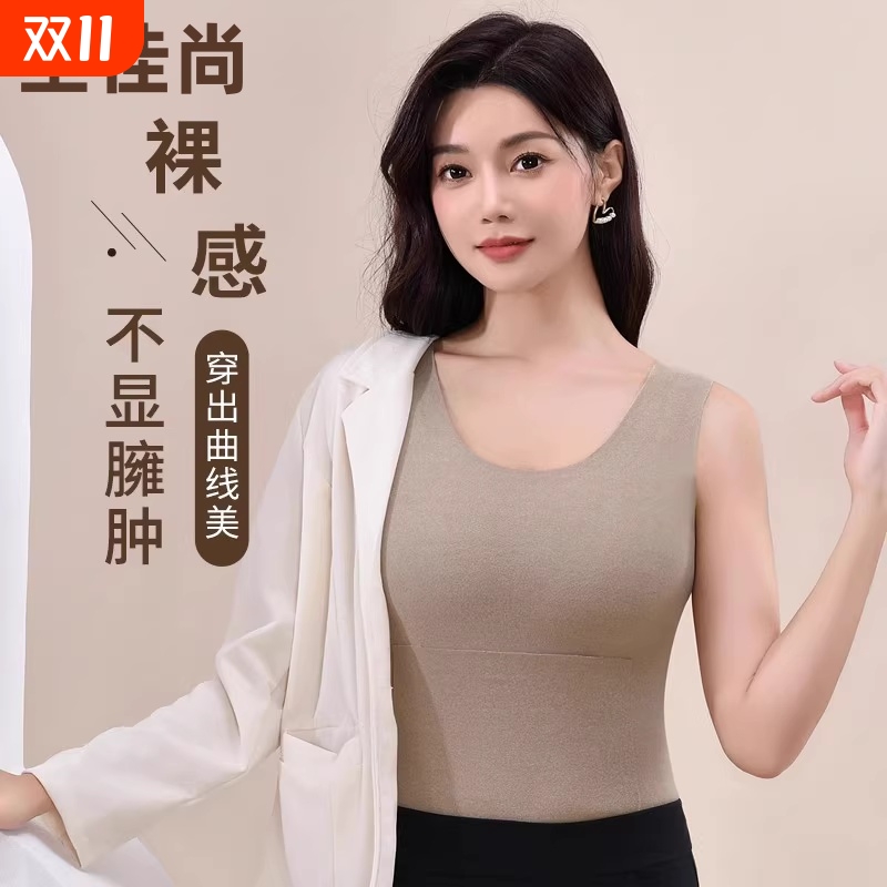 女士内搭德绒冬季打底无痕暖兜女磨毛背心双兜前后兜加厚防寒护肚