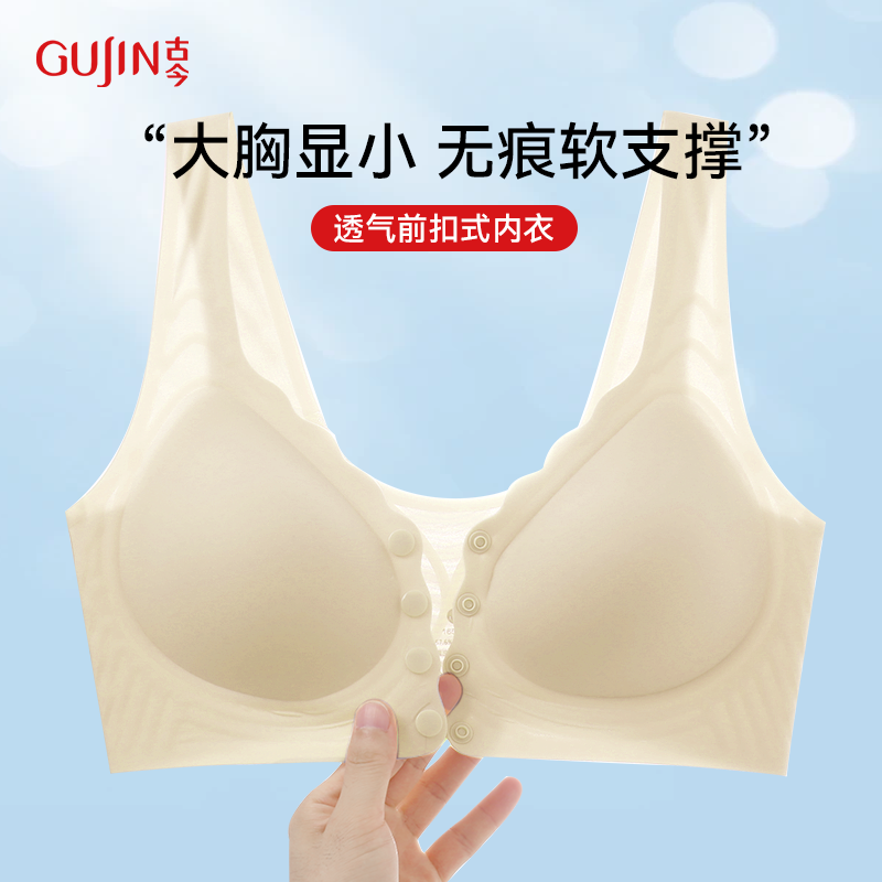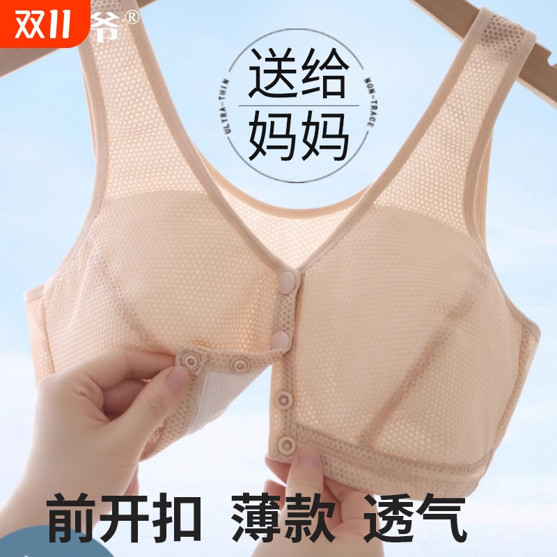 妈妈内衣无钢圈透气文胸大码夏季女前扣背心一体中老年人女士纯棉