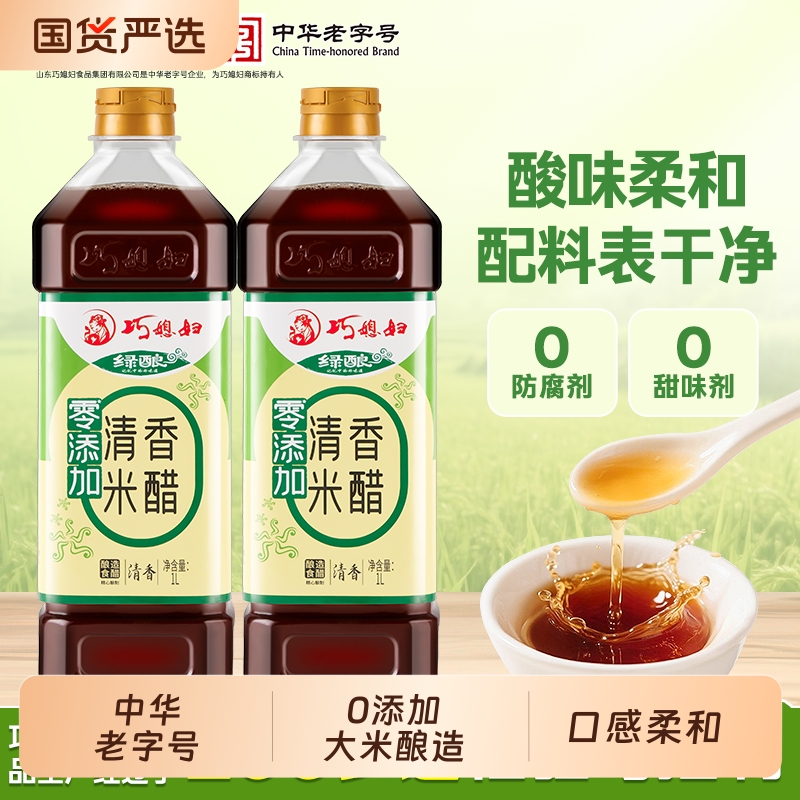巧媳妇0添加清香米醋1L装酿造米醋零添加食醋饺子醋家用凉拌调味