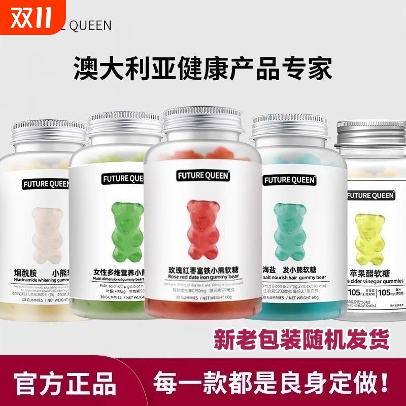 FUTURE QUEEN小熊软糖养发维生素富铁烟酰女维苹果醋新老